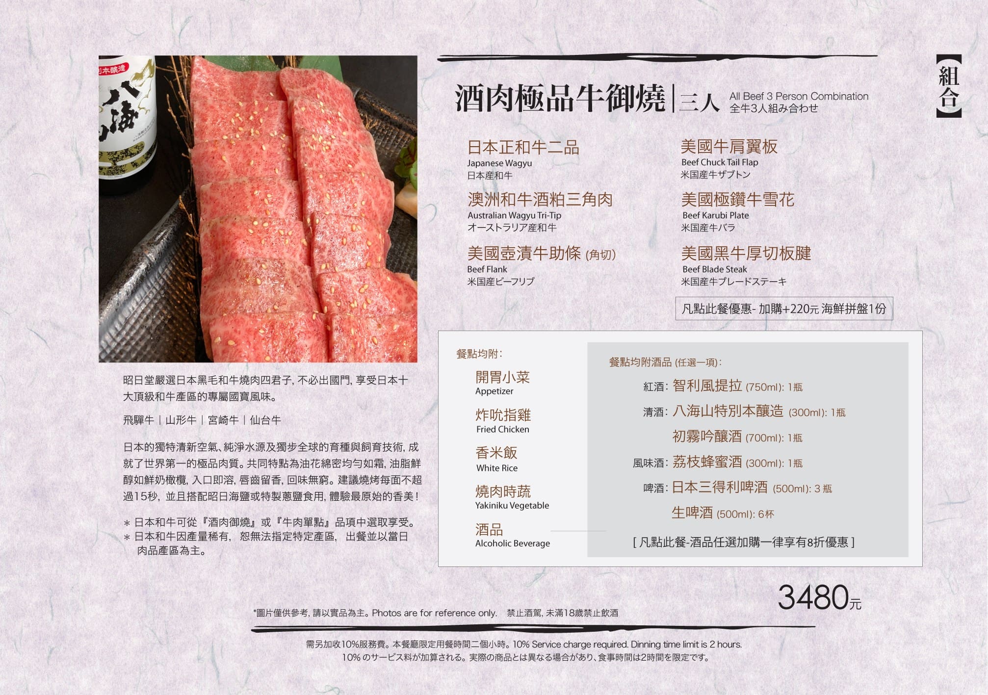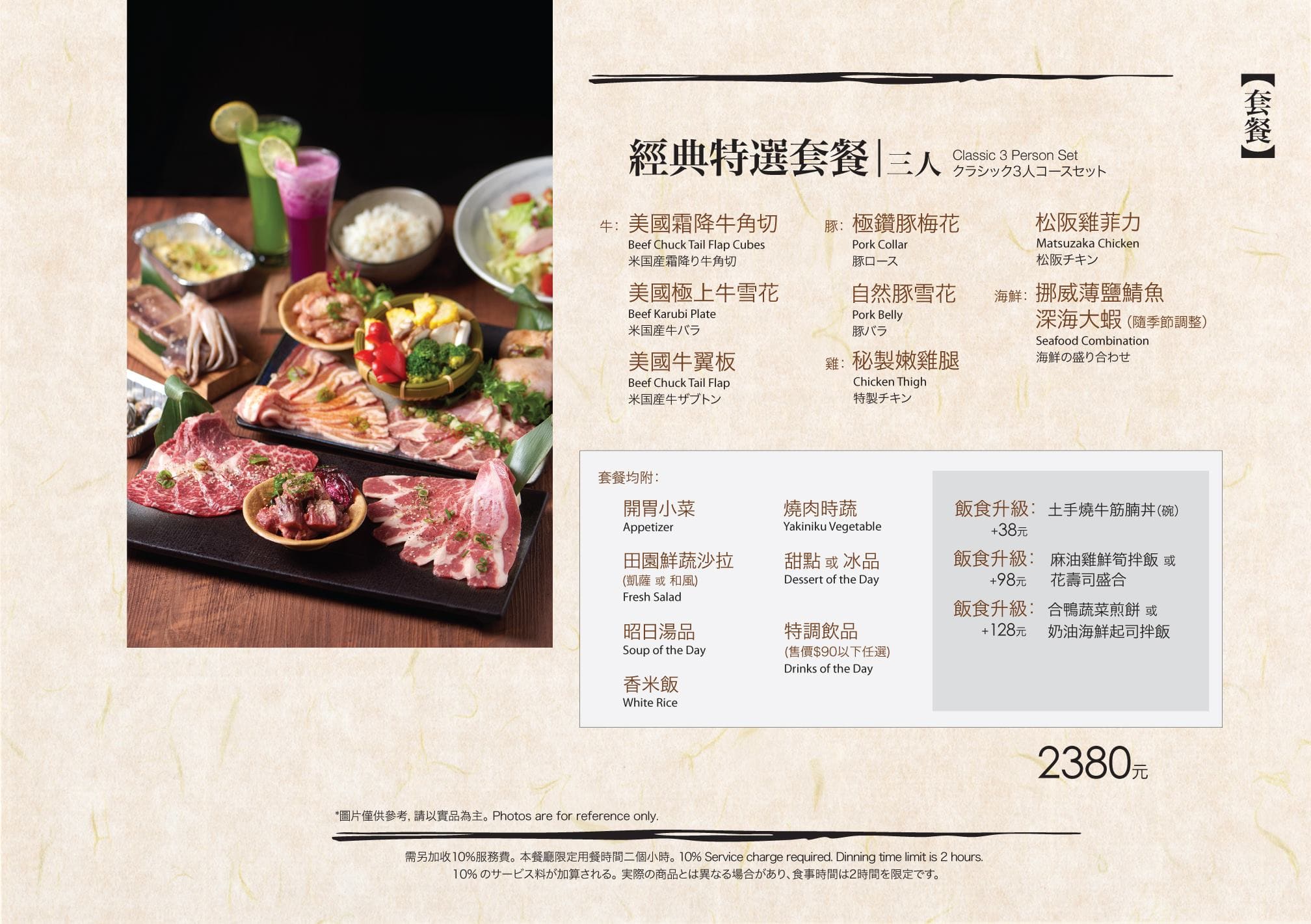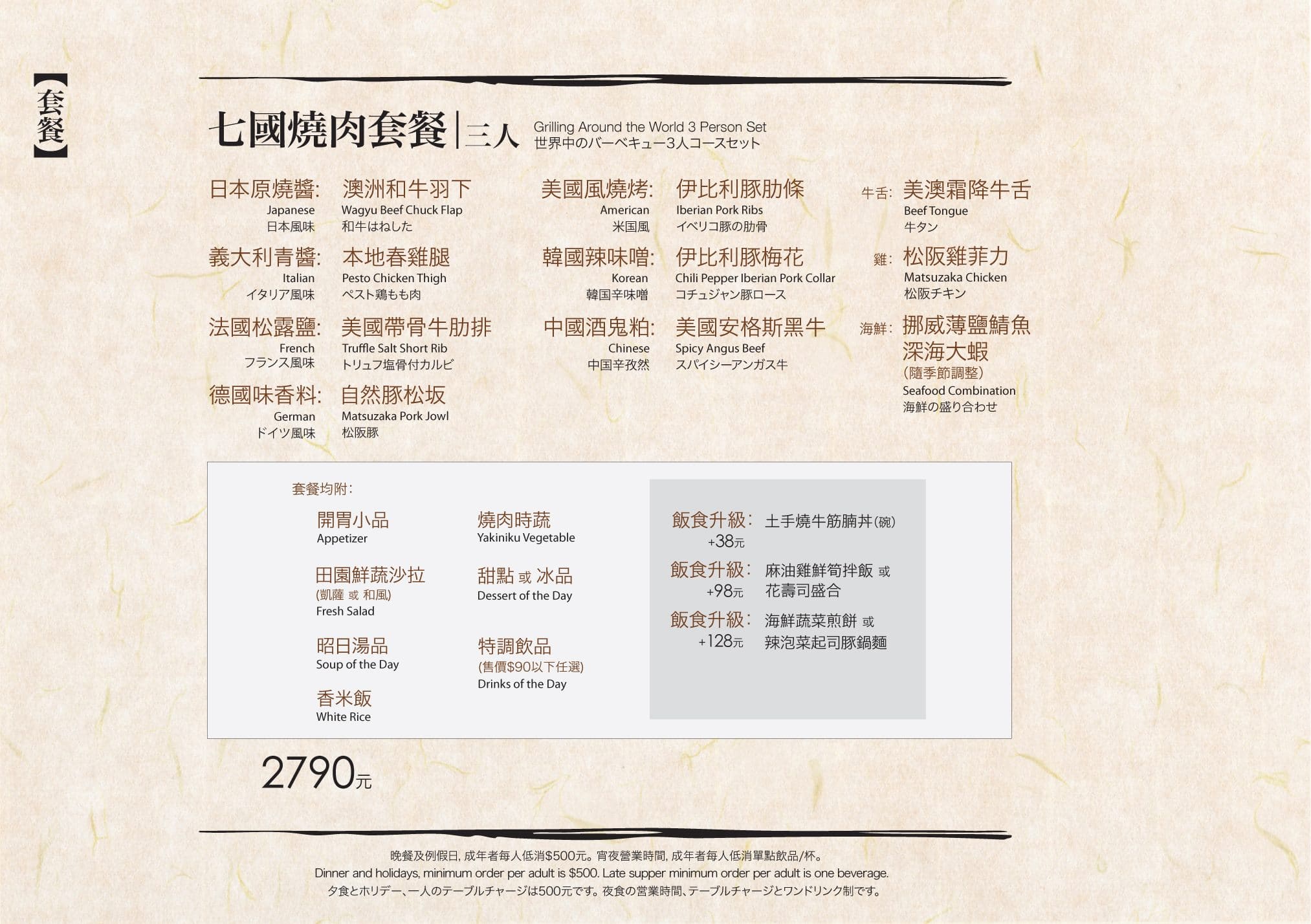 菜單有單點和套餐組合,個人覺得套餐相當划算,可以吃到多種肉阿!套餐價位也分為許多種,G粉可以依照自己的喜好選擇!除了燒肉外,也能吃到和食料理!有刺身、握壽司、海鮮、串燒、揚物、湯、鍋物以及沙拉、煎餅、石鍋燒飯等,就燒烤店來說,選擇真的很多樣化!難怪大排長龍也要吃到!